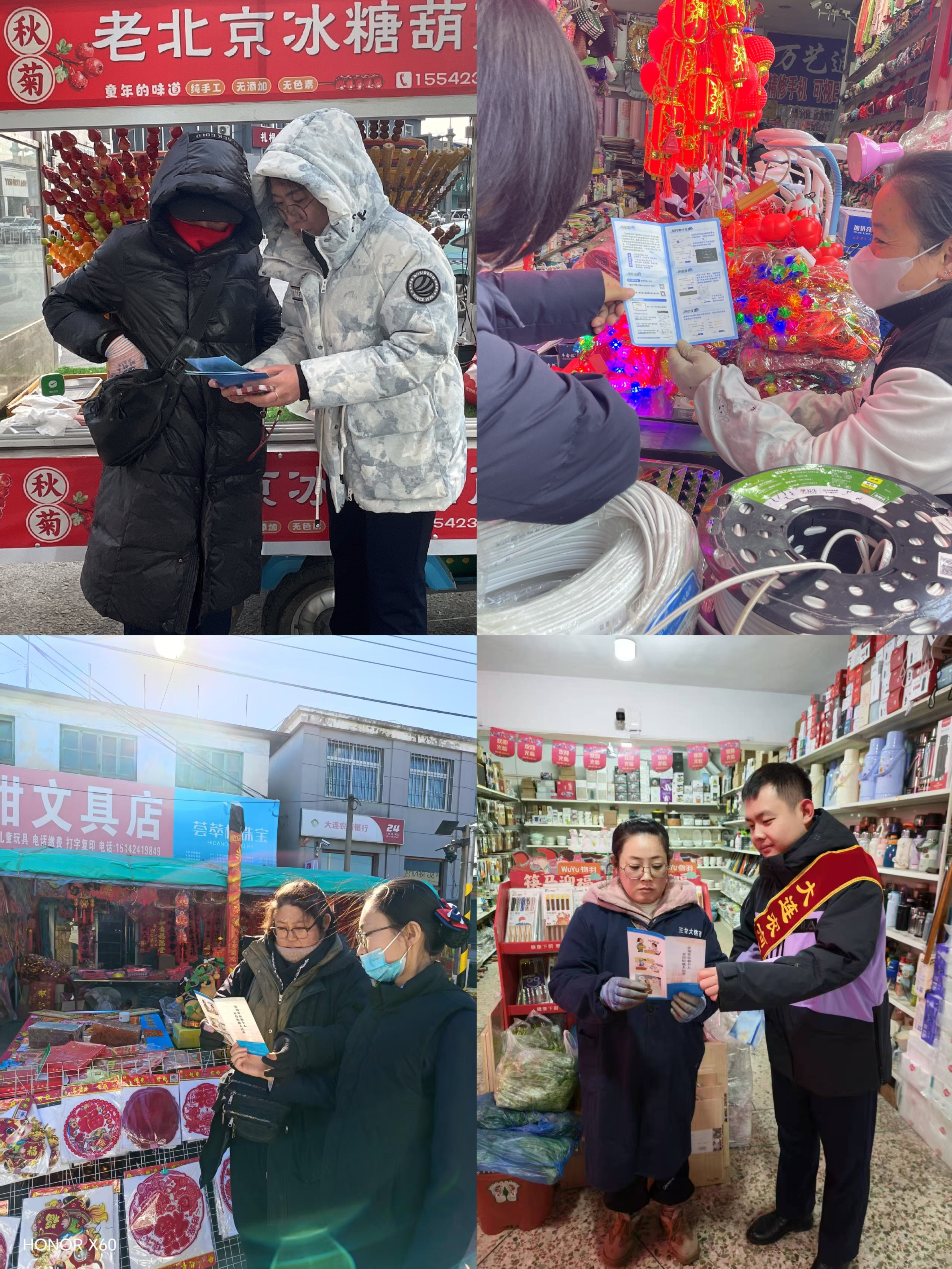 瓦房店农商行员工手提“零钱包”,穿梭于粮油店、生鲜摊、年货摊位等现金使用高频场景。针对商户“找零难”、“残损币存积”的痛点,现场办理零钞兑换、残损币回收业务,细致讲解人民币防伪特征与拒收现金整治政策,同步发放印有网点地址、联系电话、服务范围的现金服务联系卡,承诺“预约即办、上门服务”。