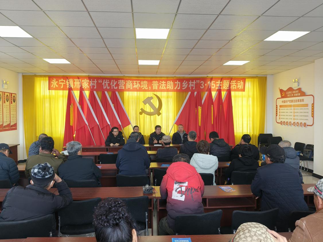 在3·15国际消费者权益日来临之际,为落实优化营商环境和乡村振兴战略部署,打通服务基层“最后一公里”,3月13日,瓦房店市市场监督管理局联合永宁镇政府、邢家村党支部,在邢家村举办“优化营商环境普法助力乡村”主题宣传活动。活动由我局在村任职选调生牵头策划,永宁分局副局长主讲,村两委成员、党员代表、个体工商户及村民代表30余人参加。